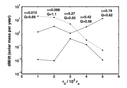The maximum Shakura–Sunyaev viscosity parameter is approximately 0.4. Fragmentation occurs when the cooling time is less than about twice the shearing time, as found by Gammie and others, but can also occur at very long cooling times in sheets that are strongly radiation-pressure dominated. For accretion at the Eddington rate onto a 10^8 solar-mass black hole, fragmentation occurs beyond 4000 Schwarzschild radii, r_s. Near this radius, initial fragment masses are several hundred suns, consistent with estimates from linear stability; final masses after merging increase with the size of the sheet, reaching several thousand suns in our largest simulations. With increasing black hole mass at a fixed Eddington ratio, self-gravity prevails at smaller multiples of r_s, where radiation pressure is more important and the cooling time is longer compared to the dynamical time; nevertheless, fragmentation can occur and produces larger initial fragment masses. Because the internal thermal and gravitational energies of these massive, radiation-pressure-dominated fragments nearly cancel, small errors in energy conservation can cause spurious results such as spontaneous dissolution of isolated bodies, unless special care is taken. This is likely to be a challenge for all Eulerian codes in self-gravitating regimes where radiation pressure dominates.